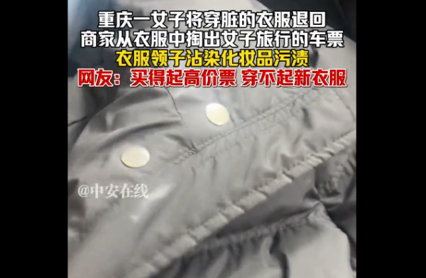 江苏一女子网购后退货,商家在检查商品时发现衣服口袋内留有旅行车票等个人物品。据微博信息显示,该女子寄回的衣物沾有化妆品污渍,疑似使用后退货,而车票为成都东站到贵阳北站的高铁票,限乘当日当次车。类似事件也曾在黑龙江发生,一名消费者收到他人退货的冲锋衣,其中遗留了机票、门票等私人物品,引发对电商退货流程和隐私安全的广泛讨论。