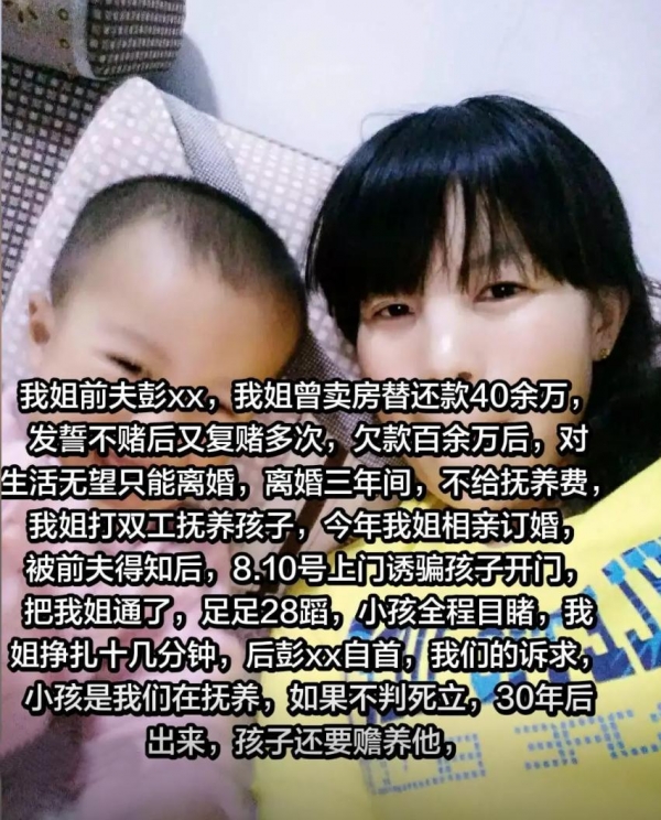 当儿子跑回家时,看到妈妈从卧室里爬出,她挣扎着从卧室爬到卫生间门口,含泪哀求彭福鑫:救救我,我不想死,孩子还小。