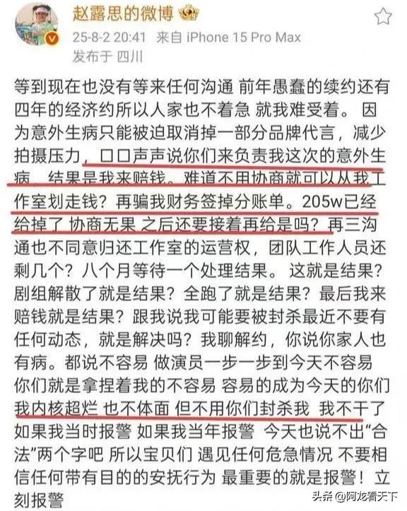 赵露思直播再爆猛料:厕所里被骂3小时?喝了酒追出来扯头发、扇脸?