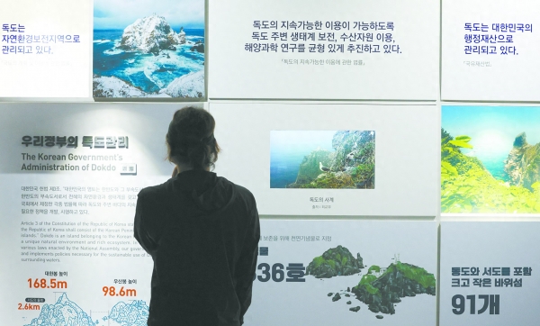 10月24日,一名男子在首尔独岛体验馆进行参观。(IC photo)