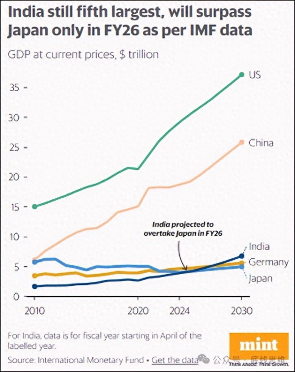 根据IMF的预测,印度目前其实仍为世界第五大经济体,超越日本可能要到2026财年实现。MINT