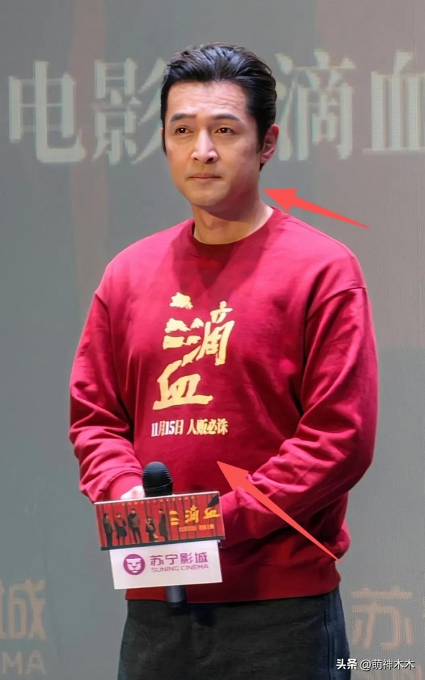 而整体的身材框架也是一种苍老状,穿着红色卫衣的他站姿不够挺拔,肩部胸部很厚实,甚至肚腩处出现了明显的浮起,整个人散发出了中年大肚腩的气质。