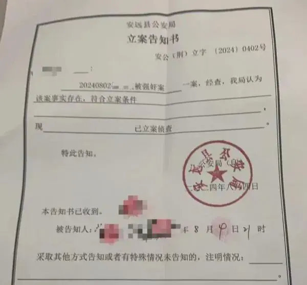 8月4日王某被刑拘,在立案书上可以清晰的看到强奸案事实成立。