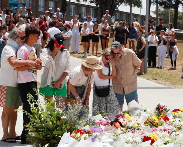 12月15日,在澳大利亚悉尼,人们在邦迪滩枪击事件现场附近悼念遇难者。新华社发