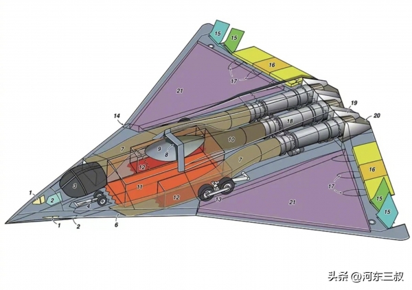 但采用三台发动机的歼-36,显然不仅个头要大上一号,而且拥有更大的航程以及载弹量等性能。美媒估计,歼-36如果配备更先进的涡扇-15发动机,最大起飞重量超过60吨,这个数量在第一次试飞时外界猜测超过50吨,预计最大载弹量超过10吨,最大航程超过6000公里,作战半径约3000公里,基本上和轰-6轰炸机接近。两条进气道位于机腹两侧,一条在机身顶部也就是背负式,进气量可观动力也非常强劲,具备2马赫以上超音速巡航能力,最大飞行速度可达3马赫。