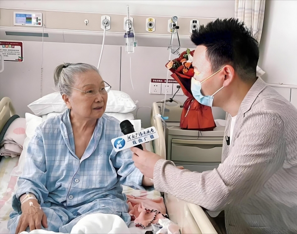 高玉秋在病房接受采访