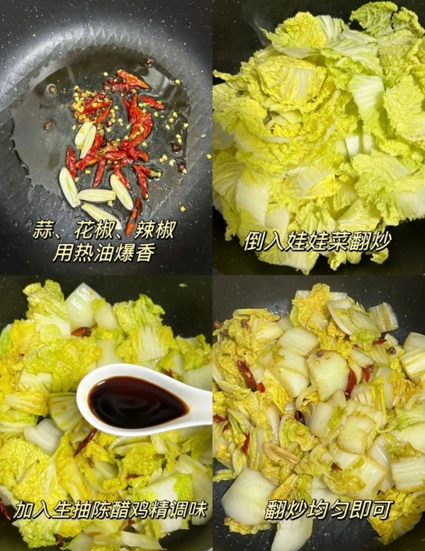 5. 淋入调好的碗汁,快速翻炒均匀,使汤汁包裹住白菜即可出锅。