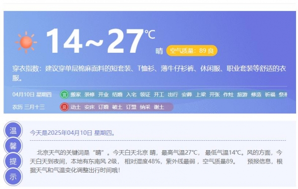 4月初,一股冷空气过后,气温也开始快速回升,昨天,北京、天津等地的最高气温达28℃,较常年偏高 8到10℃,南方更不要说了,普遍都在30℃以上。