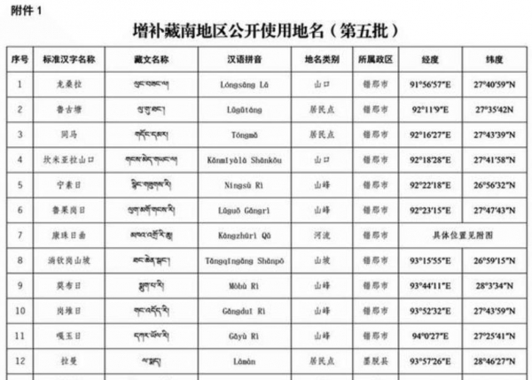 据悉,5月11日我国民政部公布藏南地区第五批增补地名。