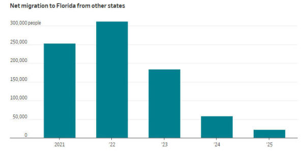 佛州的净国内移民数量持续增加,但速度明显下滑