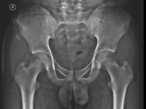 家长赶紧带他来到浙中医大二院(省新华医院)骨伤科,接诊的崔龙慷医生安排他拍了骨盆X光片。结果让大家都吃了一惊:右侧髂前上棘撕脱性骨折,一块小骨头被肌肉从骨盆上硬生生"拽"了下来。