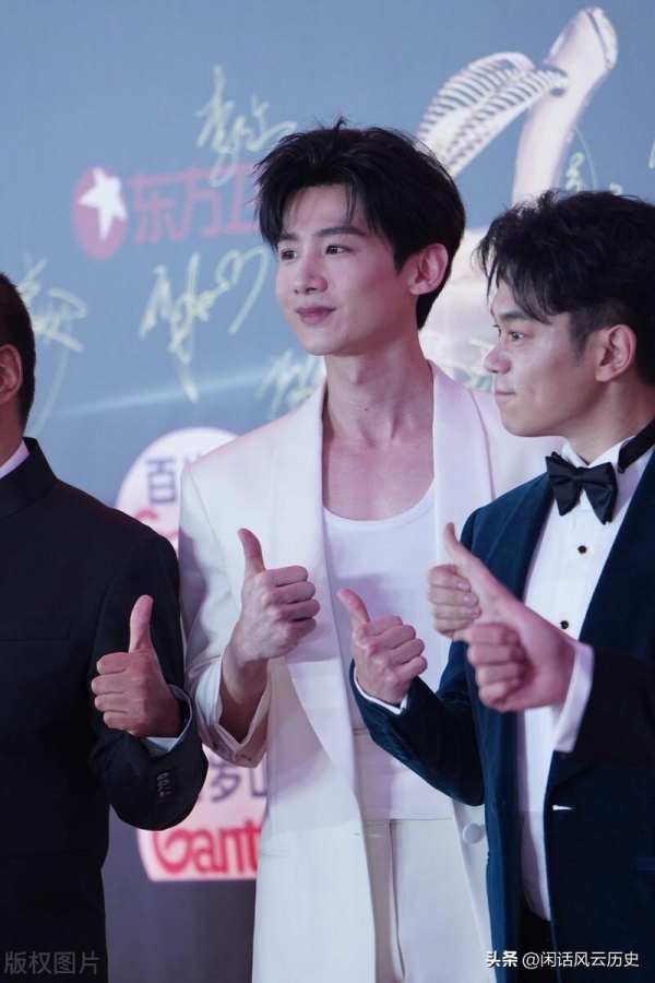 以凸显自己的稳重和成熟时,白敬亭却选择了一身炸眼的白色套装。