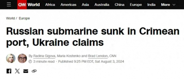 据美国有线电视新闻网(CNN)3日报道,乌克兰军方声称,在2日对塞瓦斯托波尔的空袭中击沉了一艘俄海军潜艇,"这是莫斯科在克里米亚半岛遭遇的又一次重大挫折"。乌军总参谋部在一份声明中说,被击沉的是"顿河畔罗斯托夫"号潜艇,"它当场沉没","这也再次证明,俄罗斯舰队在黑海的乌克兰领海没有安全的地方"。但乌克兰方面没有提供进一步的证据。报道称,如果该消息得到证实,这将是乌克兰对俄罗斯海军的最新打击--基辅方面声称,俄黑海舰队已经损失了三分之一的舰艇。但CNN无法独立核实俄军潜艇被击沉的消息,俄罗斯国防部也没有对所谓的袭击发表评论。