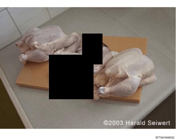 这次公布的文件内容都很黄很暴力,有一张照片,透露着诡异,在全球都炸开了。两个鸡肉中间被打上黑色马赛克,暗示着萝莉岛有吃人的情况,编号是这一串(EFTA01646032)。如果你直接在美司法部网站上搜这个编号,确实是搜不到的,但如果你搜这一串EFTA01645970,就可以在这个文件里看到这张照片。