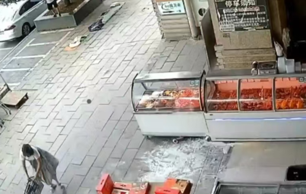 监控显示,孩子的妈妈牵着孩子从超市出来,孩子或许感知到了危险,一直喊妈妈抱抱,但是妈妈在看手机,而且好似怀孕了,没有理会孩子,