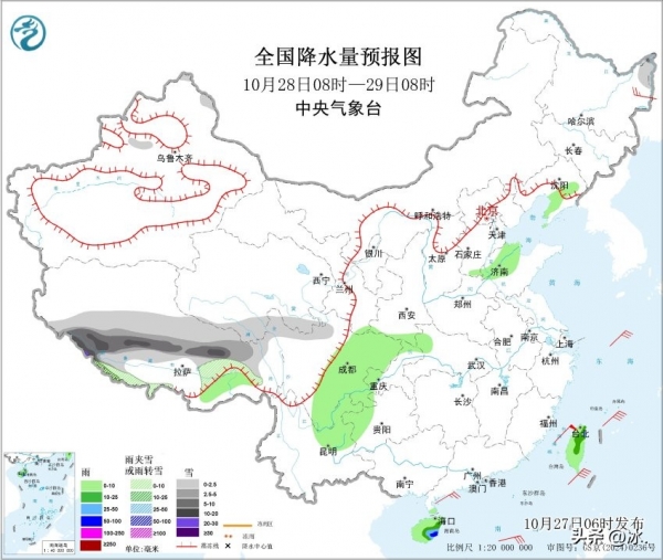 10月27日20时至10月28日20时:全省多云到晴。最高温度:本省东北部地区17℃左右,其他地区18~19℃;最低温度:本省东北部地区5~6℃,本省东南部地区10~11℃,其他地区7~8℃。全省偏东风4级左右。