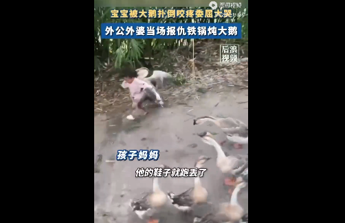 惹了最不该惹的人 9月21日,四川泸州。两岁娃被大鹅欺负,外公转头杀鹅开席,卤来吃。