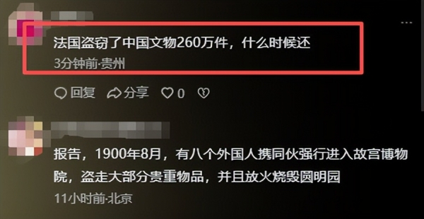 当然,也有人翻起了旧账,说法国博物馆里的东西,很多都是当年从别国抢来的。