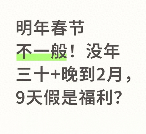 没年三十、春节推迟,却意外带来了一个大福利--2026年春节能连休9天!这是国务院办公厅2025年11月正式公布的节假日安排,绝对权威可信。