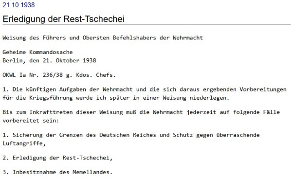 当年希特勒解决捷克斯洛伐克的指令。文献来源:NS-Archiv(纳粹档案)
