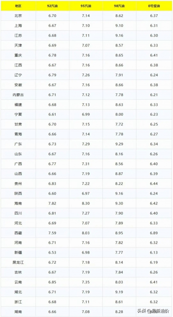 在文章的后,今天来到1月4日,全国各地最新的0号柴油和92、95、98号汽油价格情况(单位元/升):