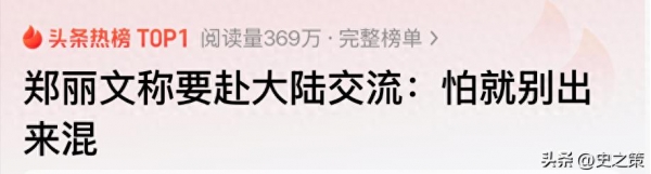 10月18号,郑丽文当选国民党党主席。19号,大陆发去贺电。而就在接到贺电后不到24小时,郑丽文果断表达了赴大陆交流的意愿,并豪迈喊话,"这有什么好怕的,怕(被贴标签)就别出来混"。