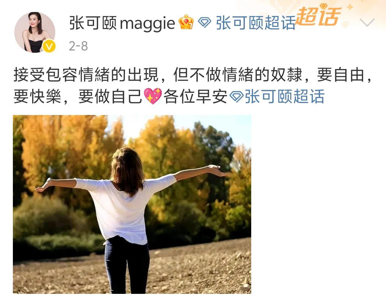 张可颐,经历过几段恋情后,扬言「我没做好准备做人妻」!单身的她留着一头飒爽的短发,演自己喜欢的剧,过着自己喜欢的生活,后来转型开了一家公司,退居幕后。爬山、健身、旅行、逛展、与友人聚会……那张毫无皱纹的脸完全看不出她也已经50多岁了。