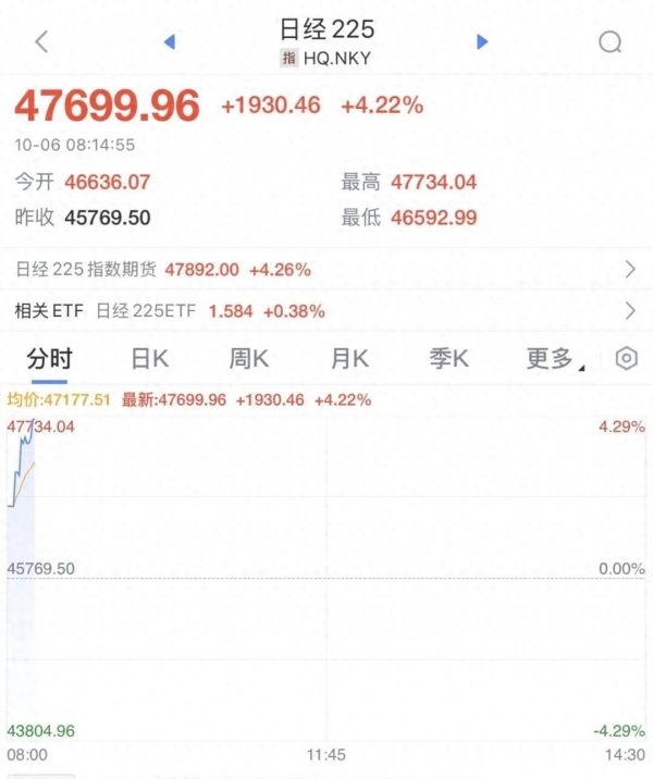 市场反应如同开闸的洪水。仅两日后,10月6日,日经225指数迎来了令人瞠目结舌的行情--盘中最大涨幅超过2000点,单日涨幅接近4%,最终报在47699.96点创下历史新高。同一天,日本东证指数也刷新巅峰,几乎所有投资者都目睹了股市跳跃式的表现。个股方面,当天住友制药、雅马哈发动机、日产汽车、松下公司等纷纷迎来了艳阳天,涨幅居前的存在感尽显。不过,显而易见的是,这样的大涨背后,经济大环境与政策变数交织成复杂的脉络,需要进一步探讨。