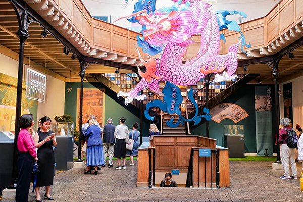 图说:外国观众观赏中国古代体育卡牌,了解文化知识。