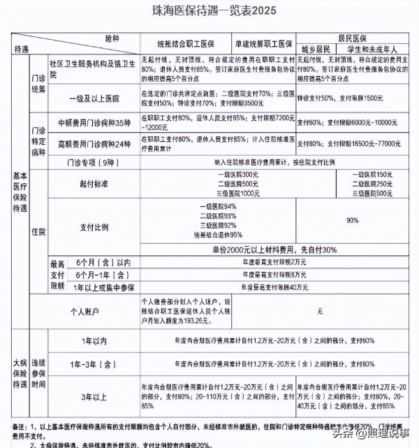 并且新农合在2016年完成合并后可参保覆盖人群更加全面了,不仅农村户籍的可以参保,还有非农村户籍的城镇居民也可参加,那么职工医保又有什么特点呢?首先就是职工医保是有个人账户的,在单位参保的每个月都有"小药钱"能打进个人账户,灵活就业人员则没有;职工医保是按月缴费的,即使中间断缴过,只要三个月内能重新缴费也不会影响报销待遇;并且在达到累计缴费年限要求时,可办理医保退休,以后享受终身医保报销待遇。还有就是职工医保的报销待遇稍高些,我们可以参考珠海的居民医保和职工医保报销情况,如下: