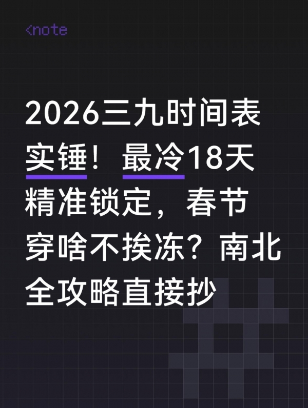 刚进腊月,全国就被一股"冻感"包裹,北方寒风刮得人脸疼,南方湿冷钻骨头缝,大家最关心的问题来了:2026年三九天啥时候来?最冷的日子到底有多冷?春节走亲访友该穿啥?