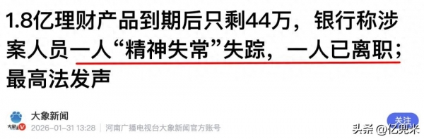 2013年,北京某公证处在大连银行开了个账户,存了3.6亿。五年后,银行说账户里有1.8亿,还买了理财。结果到期兑付时,发现账上只剩44万。更离谱的是,钱早在2014年就被偷偷划走了。银行怎么解释?"涉案员工一个离职了,一个精神失常失踪了。"