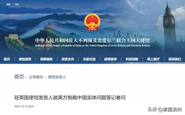 10月15日,驻英国使馆发言人就英方制裁中国实体问题答记者问。