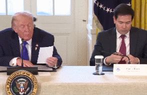 特朗普浑然不觉,还亲昵地拍了拍鲁比奥的后背,"谢谢你,马尔科!"