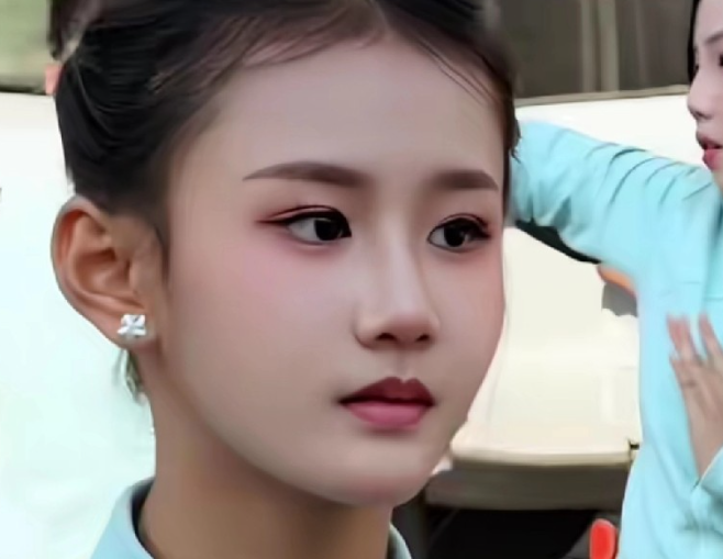 她身着简单的路训服饰,无繁复妆造加持,却自带敦煌壁画里古典美人的雅致气质。