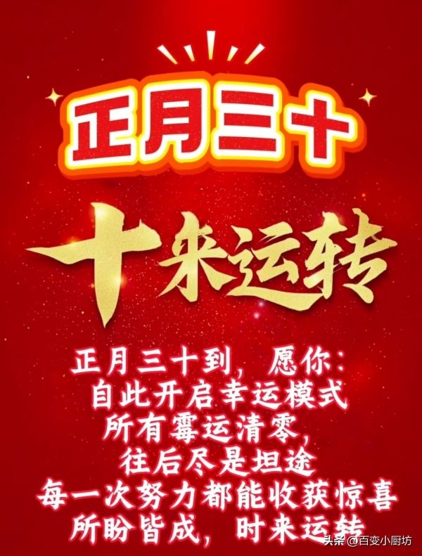 老辈人常说"正月三十扫一扫,穷气晦气全赶跑",清晨开门窗、扫尘杂物,是正月三十开财门的第一件大事,也是最基础、最实在的一件事。
