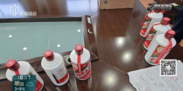 她事先在包间里准备好了3瓶假的茅台酒,然后刚好客人也拿了3瓶酒,她就一瓶一瓶放在口袋里面带下楼,放到自己楼下的电瓶车里去了。