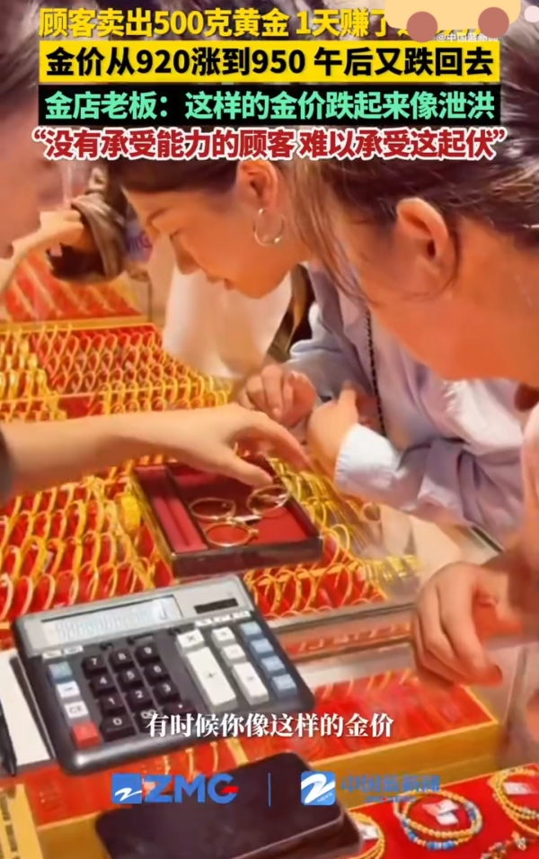 "当天下午金价就像开了闸的洪水一样往下跌,从950元/克一路回落到920元/克,前后不到3小时。"涉事金店老板在接受采访时表示,从事黄金行业12年,很少见到如此极端的短期波动,"很多顾客上午还在问'能不能再涨点',下午就慌了神,尤其是一些跟风入场的普通投资者,根本承受不住这种'过山车'式行情。"