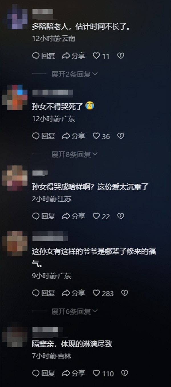 但对老人来说,他们每天的生活圈子很小,心里惦记的往往就是那几个家人,有时候,他们不需要太多东西,只是希望能听到孩子的声音,或者见上一面。