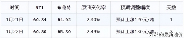 一夜飚升"再涨超1毛/升",下次油价2月3日调整:继昨天上涨的趋势,油价再进入下一次油价调整统计后,再次大涨开始了,一开局就上涨120元/吨,而且随着今天盘中的国际油价继续上涨的影响,今天涨幅又上升10元/吨,当前油价统计已经比50元/吨的涨价标准高出80元/吨,预计上调油价130元/吨,换算成零售价,约上涨0.10元/升至0.12元/升的幅度。下次油价在2月3日晚进行调整,大家相互转告,1月刚涨的油价,又一夜飙升"再涨超1毛/升"。