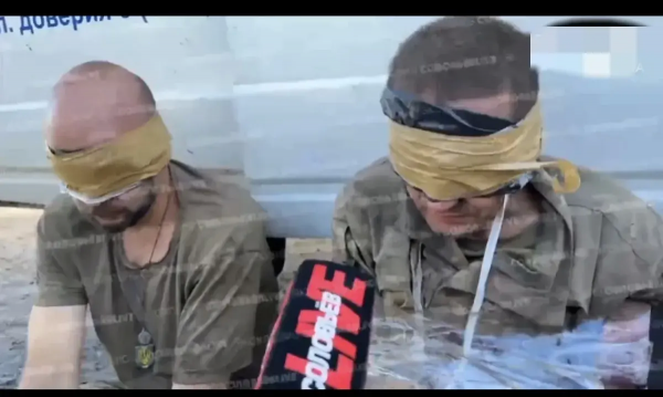 俄罗斯海军黑海舰队陆战队近卫第810海军步兵旅在库尔斯克州马来亚洛克尼亚村附近俘虏乌军第82独立空降突击旅残留的7名乌军官兵,俄军将其中两名乌军军官带到了4名之前俘虏的乌军所在的森林中。