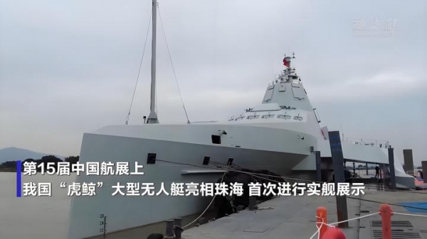 在舰体设计上,该舰采用全球罕见的"三体半潜"复合结构:主舰体借鉴潜艇线型,半潜航行时仅1-2米高度露出水面,雷达反射面积较同体积的传统水面舰艇降低80%以上;而两侧的辅助浮筒则延续了2024年珠海航展上"虎鲸"号三体无人艇的成熟技术,既能提升高海况下的稳定性(横摇幅度可减少40%),又能通过分散式结构降低单一部位受损对全舰的影响。有军事专家称这种设计完美平衡了"隐身需求"与"航行性能",解决了传统武库舰"目标过大、易被打击"的致命缺陷。