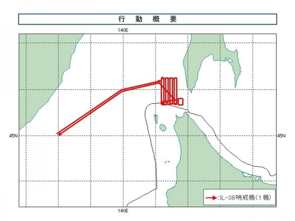 (图为日本公布的俄"伊尔-38"反潜机飞行轨迹)