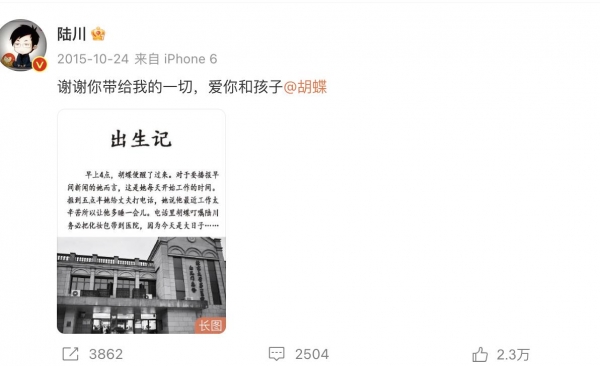 分手的原因不难理解,陆川的大男子主义让秦岚失去自我,陆川要的是一个老妈子,一个倾尽所有帮扶他的女人,可秦岚是那么耀眼的女明星,她何苦遭这份罪。和秦岚分手后,陆川立马迎娶别人,生了两个孩子,在他的微博主页,置顶的一条是对妻子胡蝶的告白。