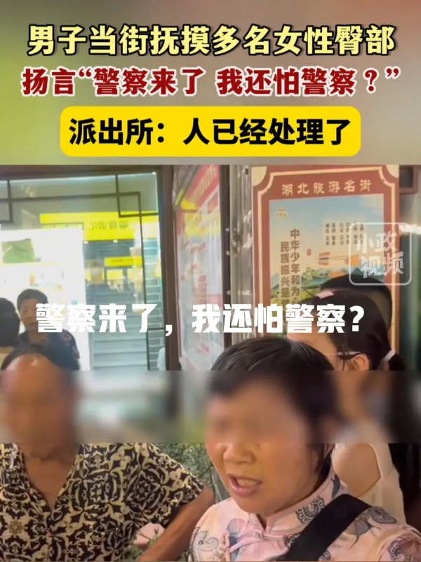 之后,几名被摸的女孩把秃顶老头围住不让他走,然后报了警,在这期间几名女孩也是冲着老头怒斥道:别走,你别走,一会警察就来了!
