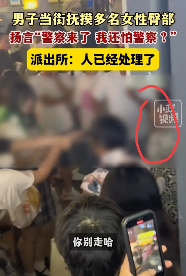 当他经过一穿短裙的女孩旁边时,伸出了他的咸猪手,摸了小姑娘的臀部,吓的小姑娘赶紧转身,这时看到这一幕的其他女孩也发声:看到了吗?他是故意的,他刚才还摸我们了呢!