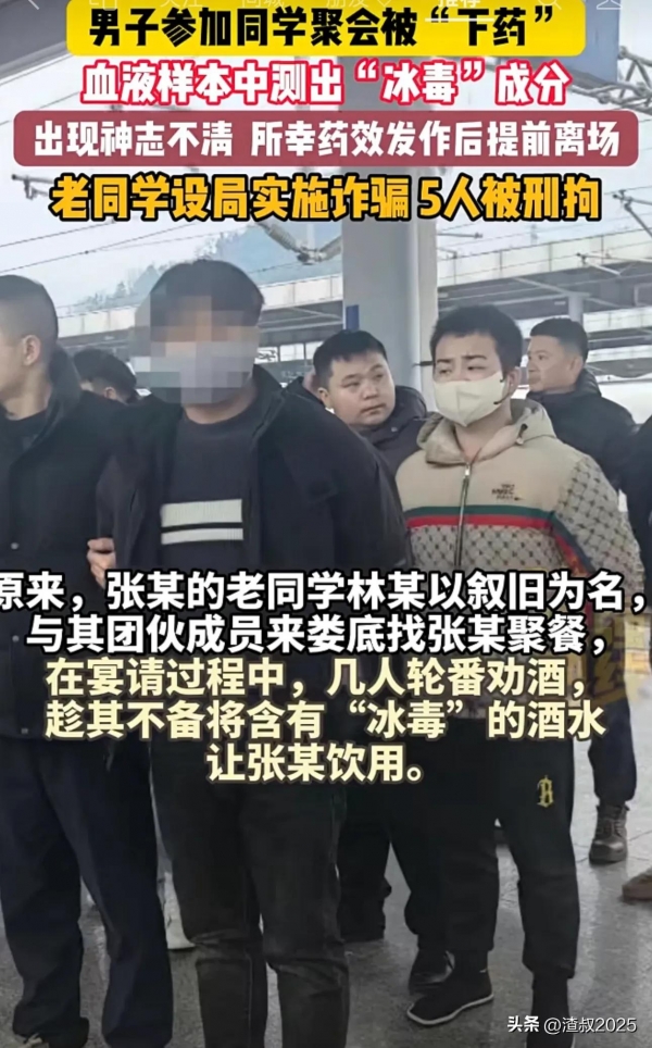 原来,张某的老同林某以叙旧为名。与其团伙成员来娄底找张某聚餐,在宴请过程中,几人轮番劝酒。在宴请过程中,几人轮替劝酒,趁其不备将含有"冰毒"的酒水让张某饮用。