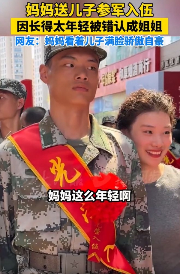 如果说妈妈的年轻带来的是外在的惊讶,那儿子身上的气质则是一种内心的成熟。一个新兵能在这种场合表现得如此沉稳,说明平时的教育和家庭氛围起了很大作用,这不是临时的装样子,而是真正进入了新的角色
