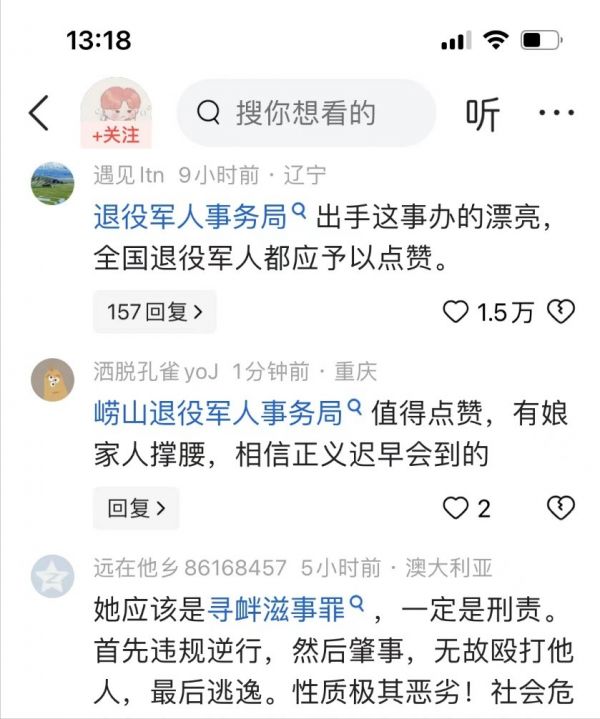 退役军人事务局也一直是受到全社会尊崇的,尤其是这次是中国退役军人官号发声要维护退役军人权益,也看到了军人为国防建设奉献了自己的青春,是全社会尊崇的职业,他们的尊严与权益保障对整体退役军人队伍的意义重大,当事人"崂山小林"也发视频称崂山区退役军人事务局来看他了。