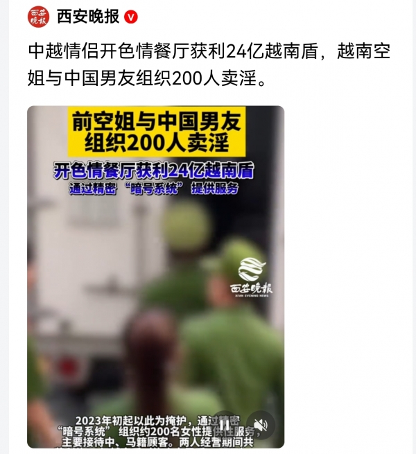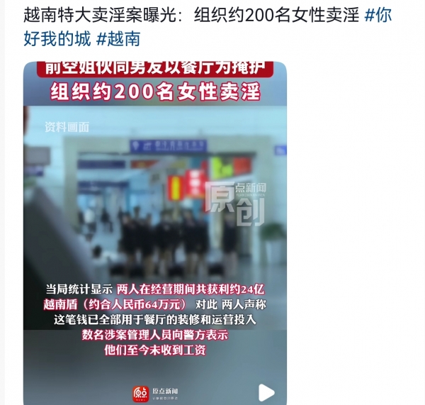 就在近日,越南胡志明市一起特大卖淫案件被曝光,涉案人员高达200余人,而组织者,居然是一名前空姐,而且连她的男友也参与其中。